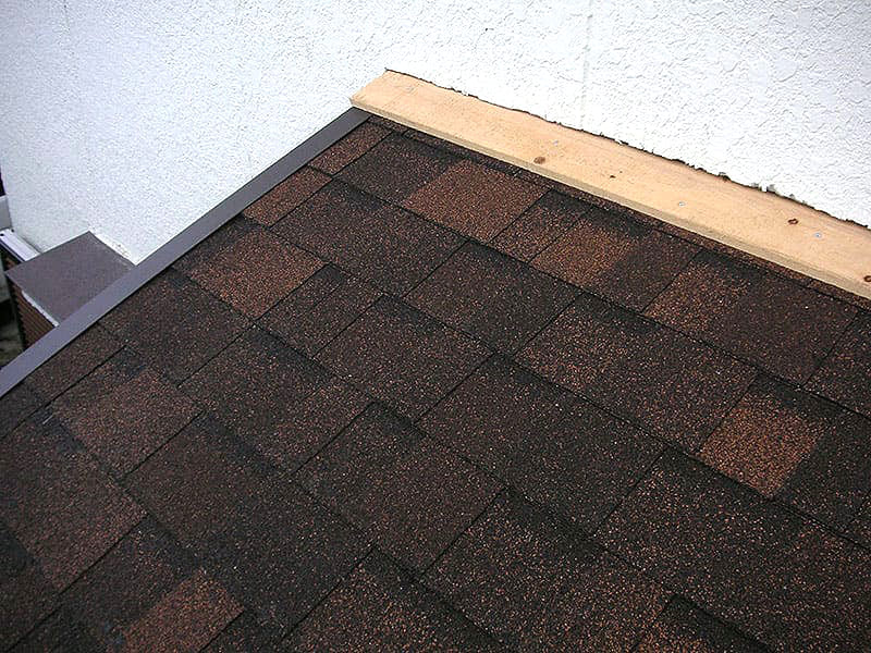「水切り役物を取付けて下さい。」と言う事で、現地調査した所、アスファルトシングルが施工されており役物の雨切(水切)取付く位置に貫板が取付けていました。